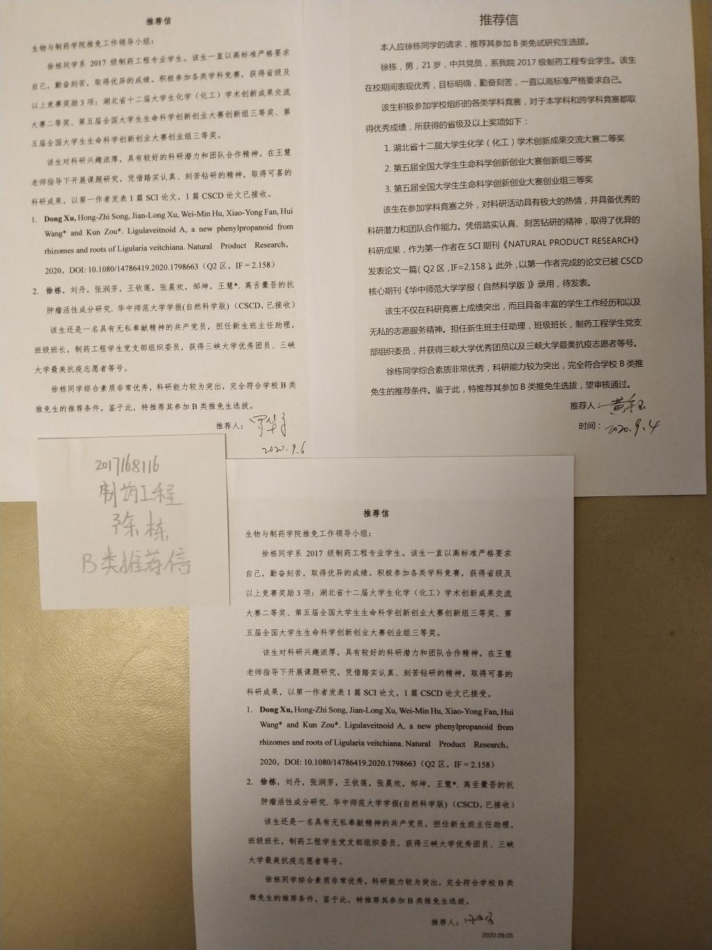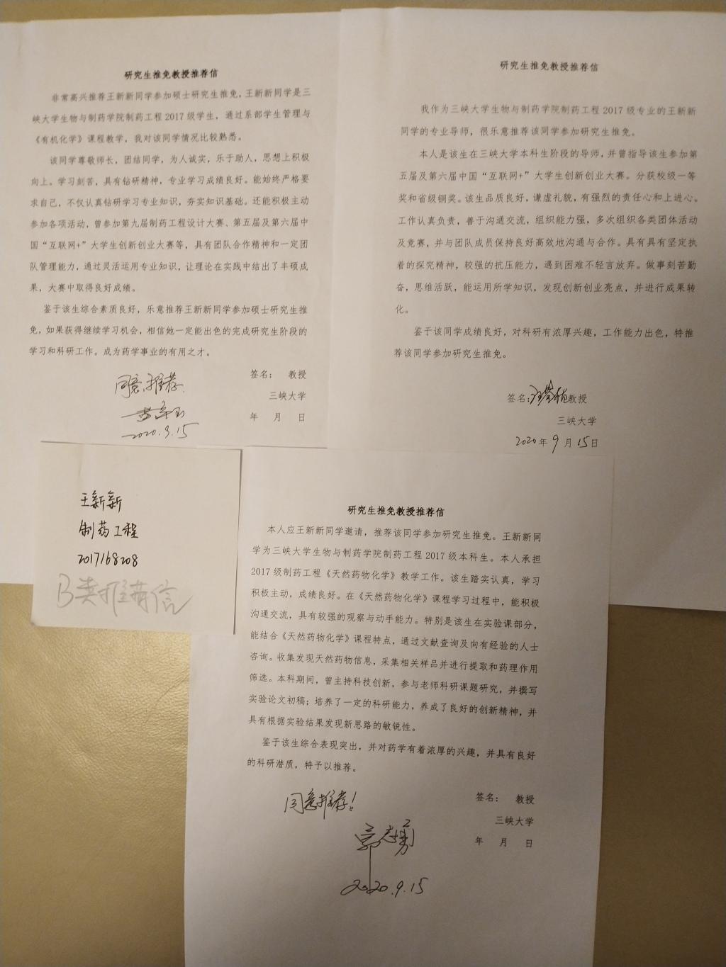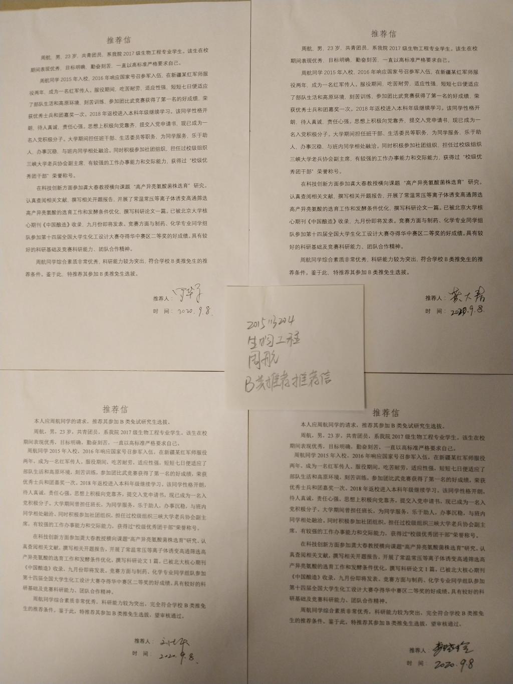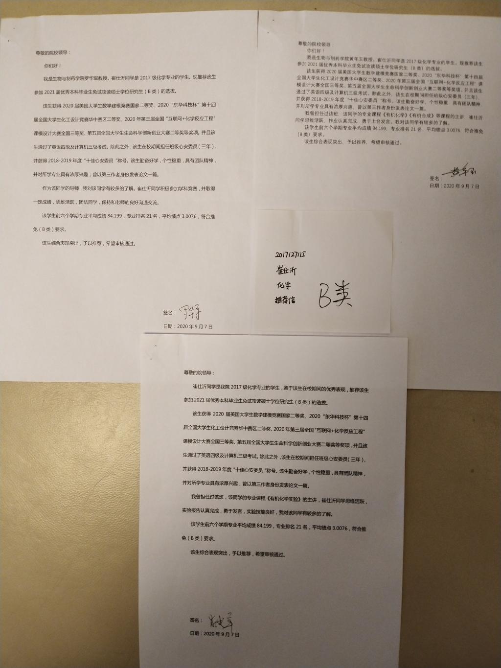B类推荐信: