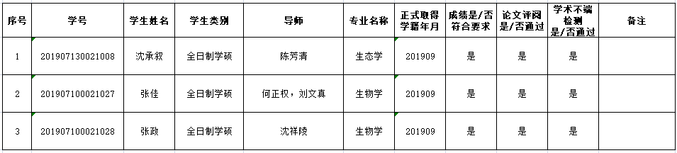 三峡大学生物与制药学院2022届硕士毕业生学位授予审查汇总表公示(九)
