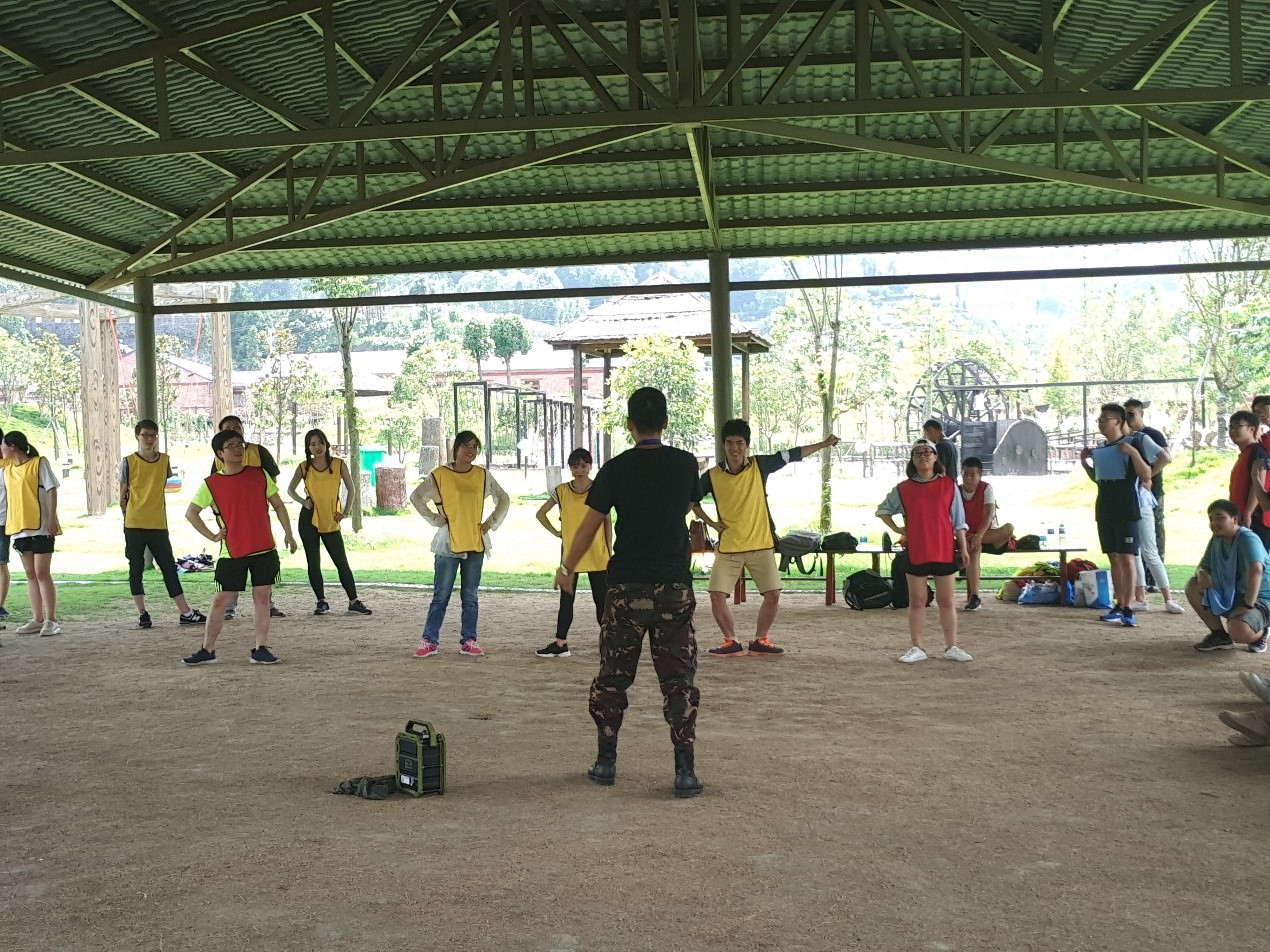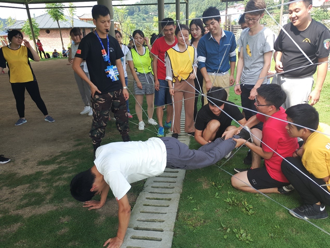 早上八点全体同学在生命科学楼集合出发,历经一个多小时的车程到达月亮花谷随后展开素质拓展活动。第一个项目是专业介绍,各专业负责人面向全体学生介绍了生药学院各专业的研究方向和研究特色,富有特色的专业介绍引起了同学们的阵阵掌声。随后我们进行了分组,整个研一分为“火狼队”、“SCI队”、“我们都队”和“雷霆队”,并进行了队歌、口号和造型展示。接着我们以组进行了“萝卜蹲”、“雷区取水”集体游戏,各组采用记分制,这两个游戏旨在使我们感受到一个团队中领导的作用。下午我们进行了培养团队协作能力的项目“穿越电网”和“七巧板”,这两个活动必须要团队成员协作一致才能完成任务。