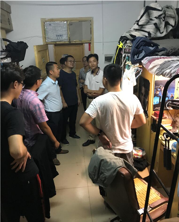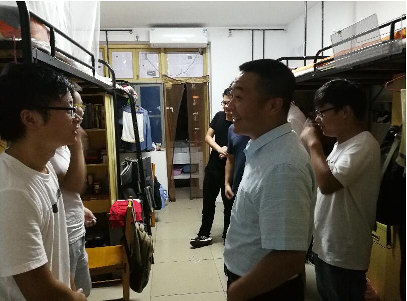本网讯(通讯员 文/李湜 图/曾春涵)9月4日晚,生药学院副院长周海峰、党委副书记刘士成、肖述章教授以及研究生学生会成员到达南苑和欣苑寝室看望17级研究生新生。