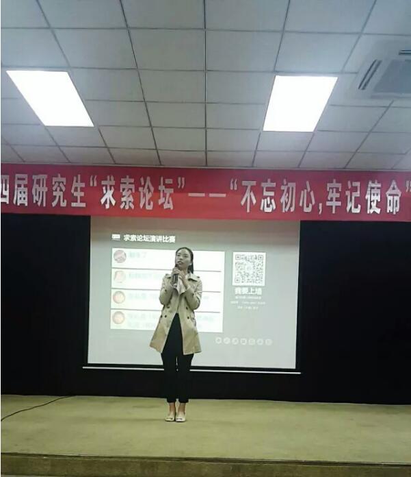 此次演讲比赛代表生物与制药学院出战的两位选手是瞿红云、刘慧慧,两位同学以“不忘初心、牢记使命共筑科研梦”为主题,向我们讲述了即使在科研工作中遇到了再大的困难我们也不能忘记我们的梦想,我们可以自己深究、可以向导师求助,以解决困难,最终实现我们的科研梦。两位选手以87的高分进入了第二轮比赛,经过披荆斩棘,最终在此次演讲比赛中获得了第六名的好成绩。最后,观众给予了选手和工作人员热烈的掌声,感谢他们给我们带来了精彩得比赛。