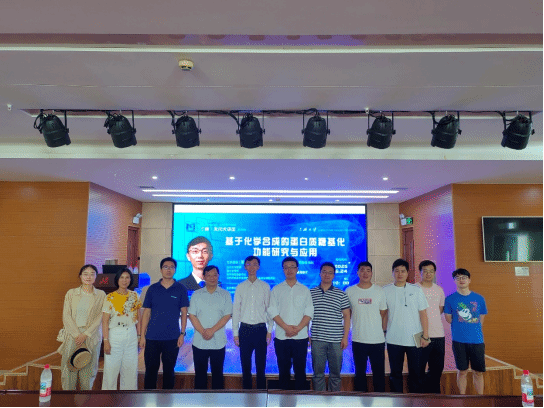 董甦伟教授系统阐述了蛋白质化学合成技术的最新进展,深入解析了糖基化蛋白质的精准合成策略及其在创新药物研发中的突破性应用,并介绍了糖基化修饰对蛋白质功能调控的分子机制及其在药物开发中的应用前景。报告结束后,董教授与在场师生就糖蛋白药物的化学合成、人工设计、翻译后修饰调控等前沿问题展开了热烈讨论。