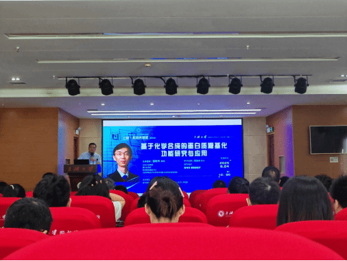 (图文/姚辉 刘军伟)6月24日上午,由三峡大学科技发展研究院主办、生物与制药学院活性天然产物合成及应用团队承办的第204期“三峡·天问大讲坛”在图书馆昭君报告厅举行。北京大学药学院董甦伟教授应邀作题为《基于化学合成的蛋白质糖基化功能研究与应用》的学术报告。报告会由生物与制药学院周海峰院长主持。制药工程专业教师和本科生,药学、化学、生物学等多个专业研究生共百余名师生聆听了这场精彩的报告会。